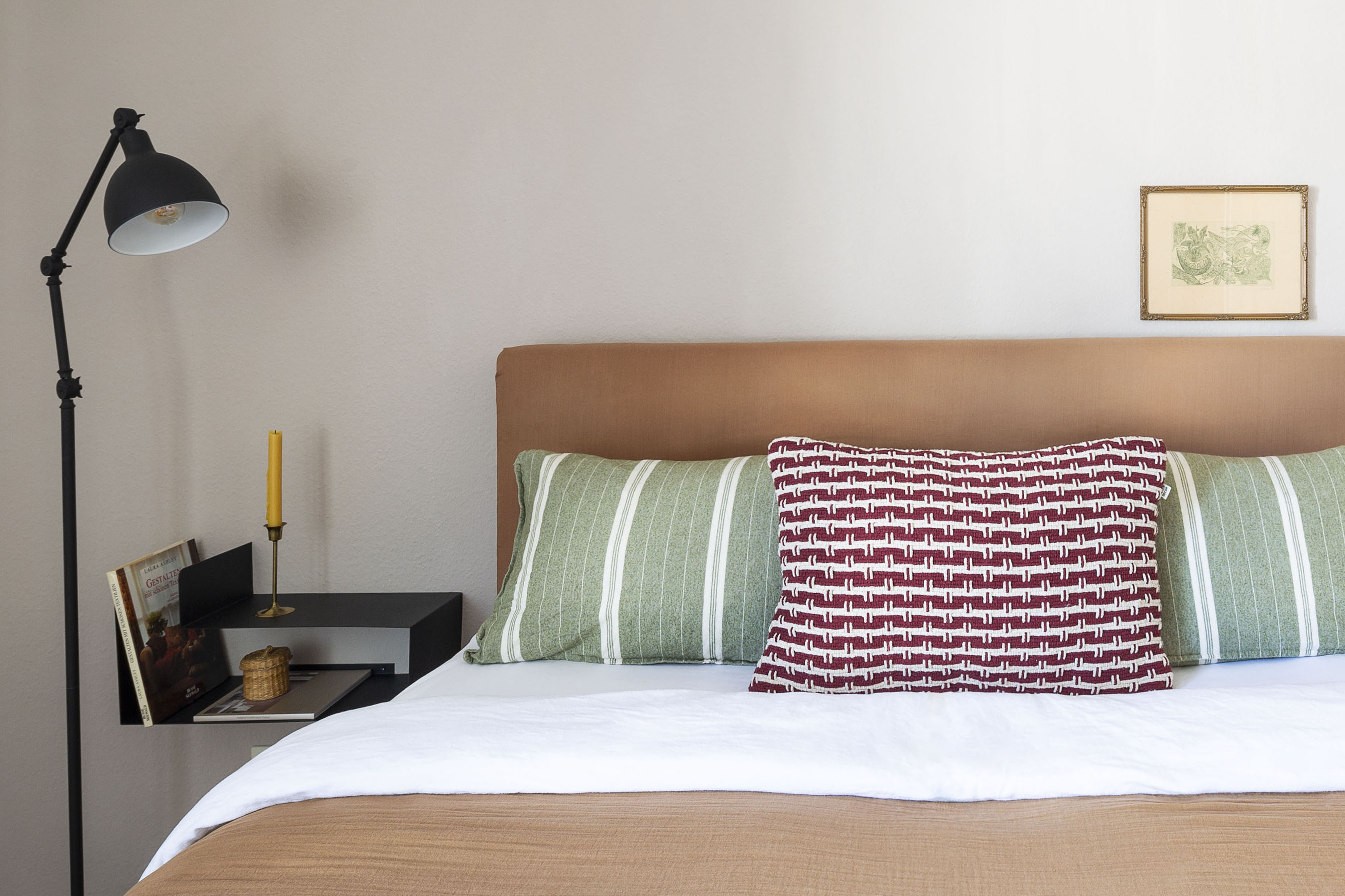 Das Design strahlt Ruhe, Geborgenheit und natürliche Wärme aus. Die Farbpalette in braun, beige und grün, mit „unexpected red“ Akzenten schaffen eine beruhigende Atmosphäre mit spannenden Details. Die Möbel setzen auf klare Linien mit Vintage-Charakter im Spannungsverhältnis zu modernen Materialien, wie schwarzes Metall. Kleine Details – wie frische Blumen und Vintage-Kunst verleihen dem Raum Persönlichkeit und machen ihn einzigartig und speziell.